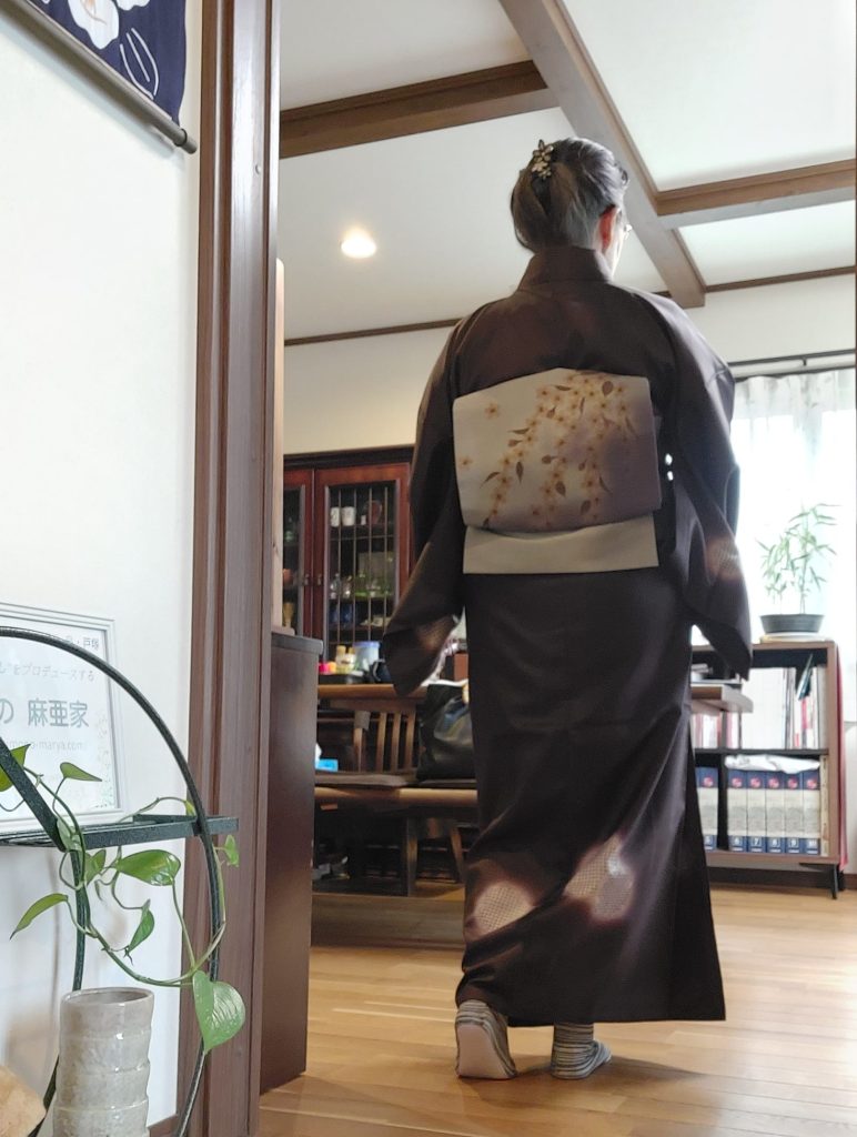 私は雪輪の着物に桜の帯をコーディネート